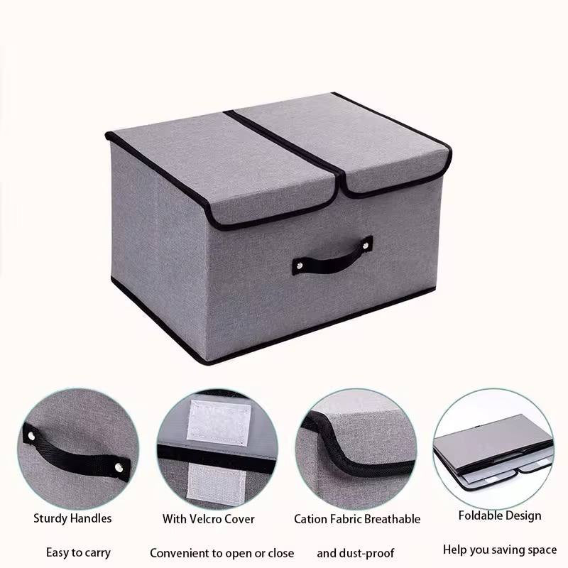 ✨ بوكس تخزين كتان - 2 خانة ❤️✅ قابل للطي: استخدمه كخانة واحدة أو اثنتين حسب الحاجة. 👖🥼🧥 متعدد الاستخدامات: مناسب للدريسنج روم، المكتب، المدرسة، وتنظيم جميع الأغراض الصغيرة. 👌 حجم جامبو مميز: يجمع بين الجودة العالية والمتانة. هذا البوكس هو الحل المثالي لتنظيم أغراضك بكل سهولة وأناقة!